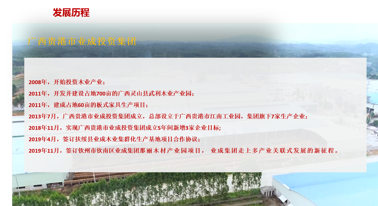 安博网页版登录入口-安博(中国) (以下简称:业成集团)成立于2013年7月,总部设在广西贵港市江南工业园,两大生产基地分布在广西贵港市江南工业园、广西灵山县武利镇木业产业园,员工2000多人,固定资产12.5亿元,年产值10亿多元,经营产业涵盖项目投融资、木业加工、房地产开发、仓储物流等行业,主导产业为木业加工。...
